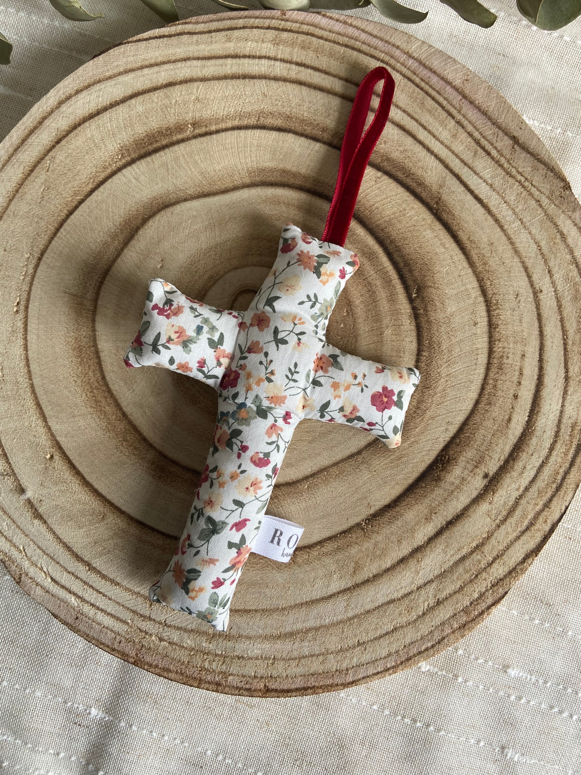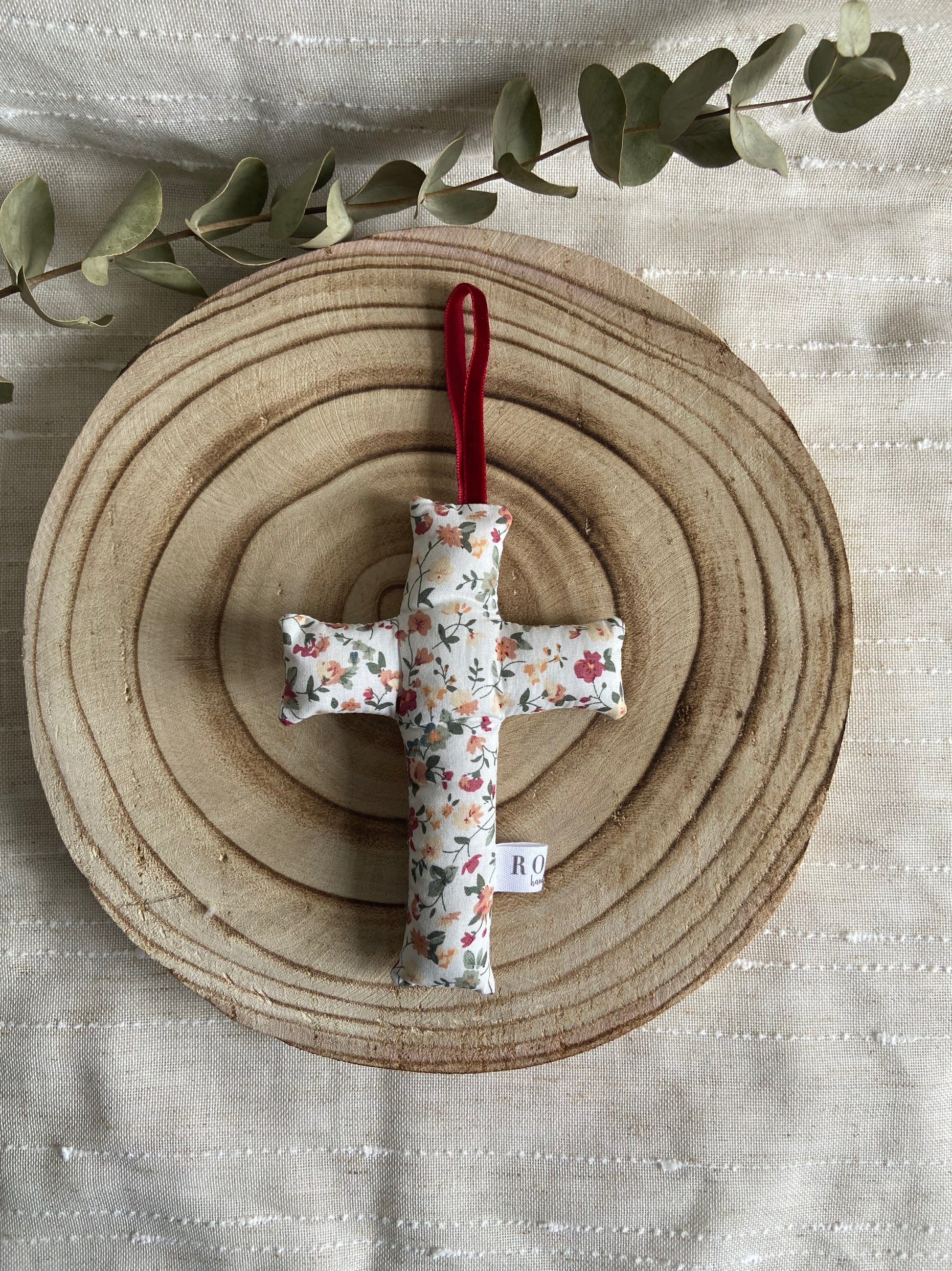 Esta Crucecita artesanal está hecha a mano con mucho mimo y cuidado, utilizando nuestros estampados bonitos de flores y cuadros vichy.
