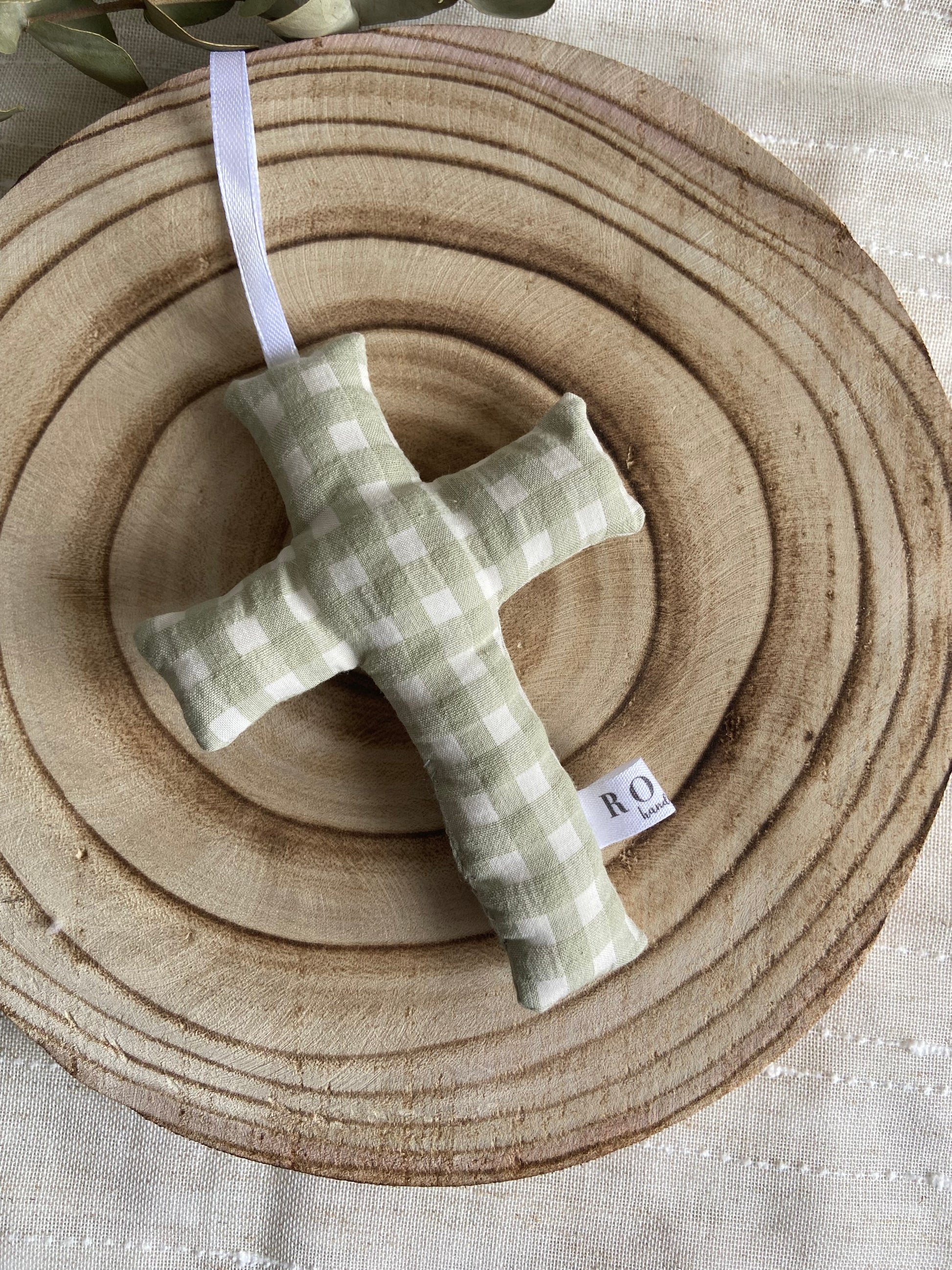 Esta Crucecita artesanal está hecha a mano con mucho mimo y cuidado, utilizando nuestros estampados bonitos de flores y cuadros vichy.